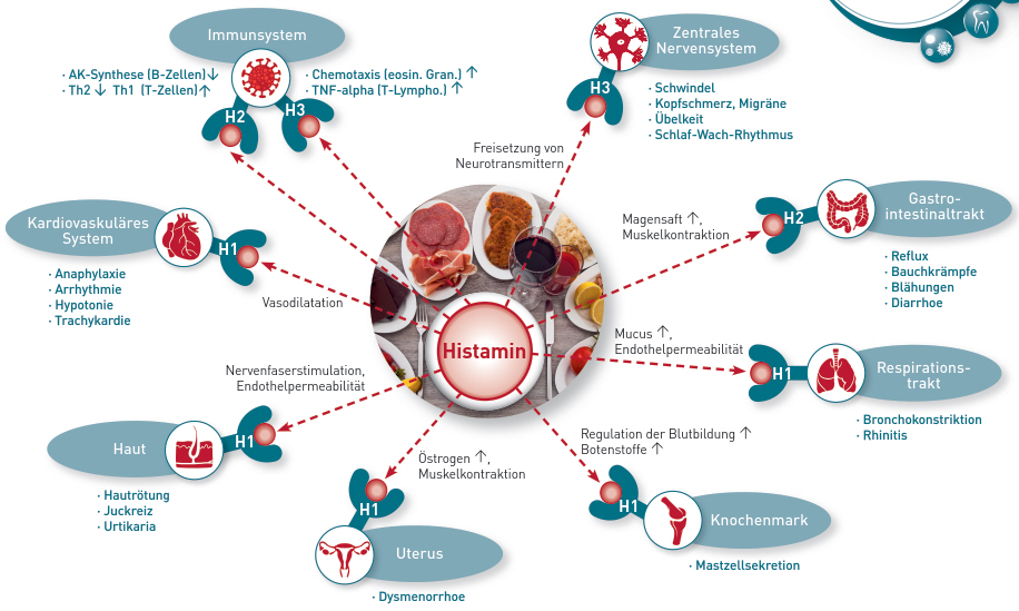 Histamin ist ein lebenswichtiger, natürlicher Stoff im menschlichen Körper. Es wirkt als Gewebshormon und als Botenstoff (Neurotransmitter) im Gehirn. Deshalb ist der Begriff „Intoleranz“ hier eigentlich irreführend – niemand ist intolerant gegen einen körpereigenen Stoff wie Histamin, Adrenalin oder Testosteron.