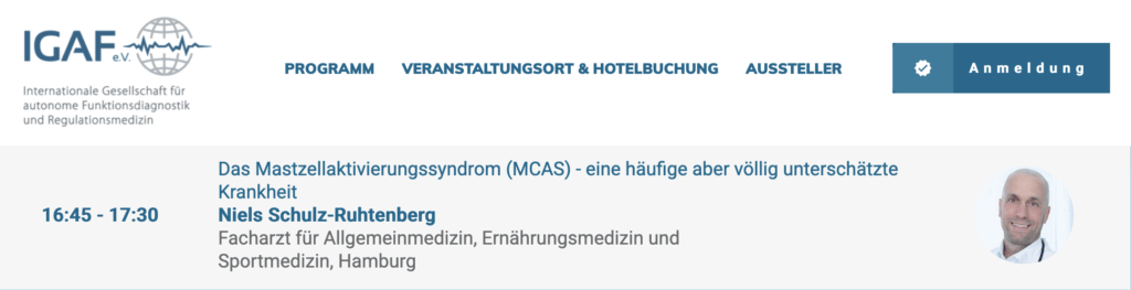 Ich stelle das Thema MCAS auch auf dem Kongreß für Regulationsmedizin der IGAF 2025 vor.